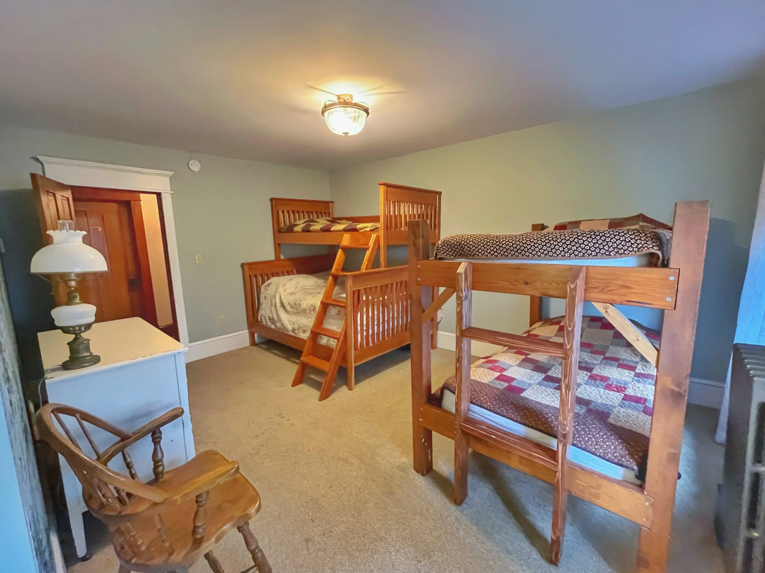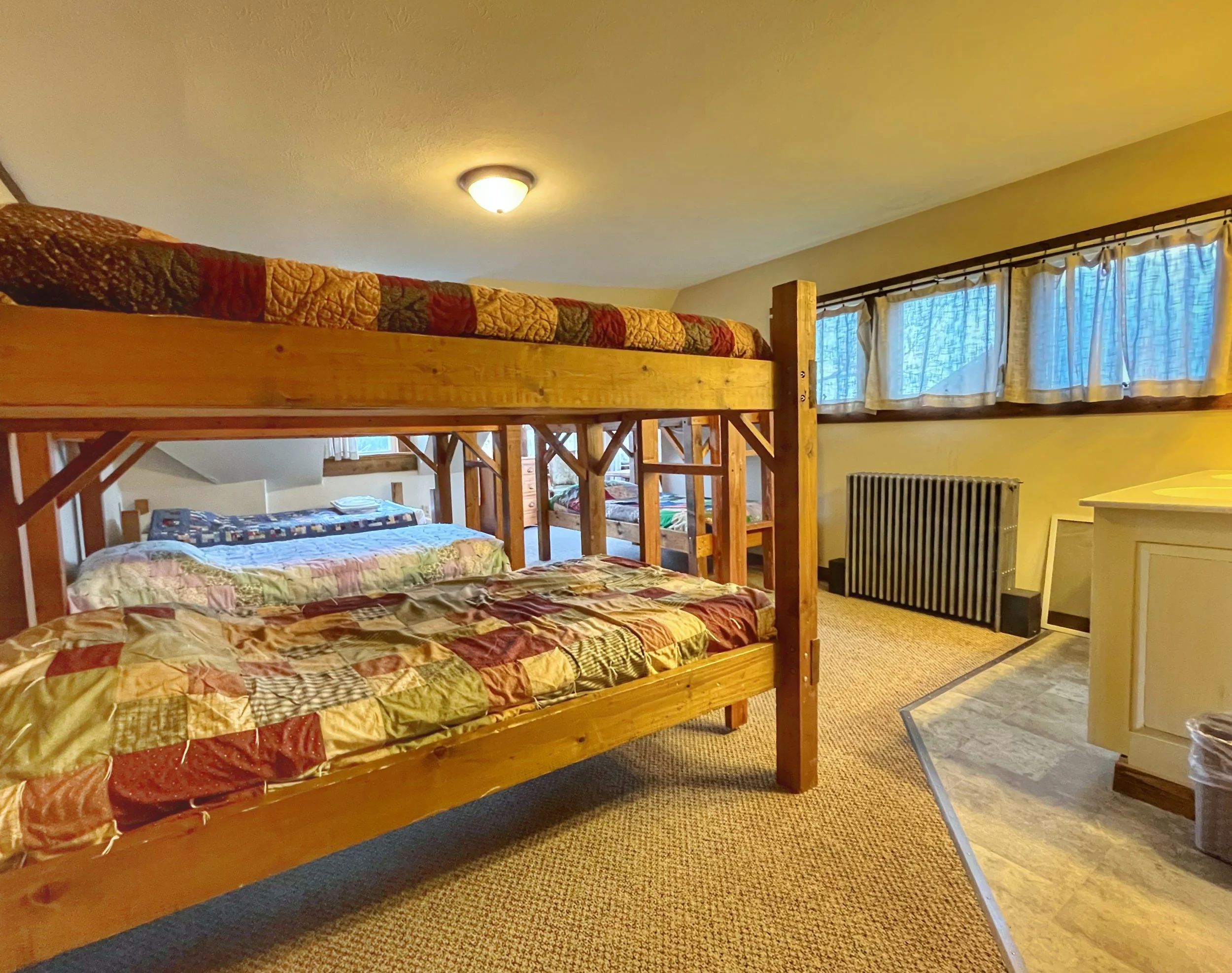Located in the mansion, the Library room includes a bathroom/shower down the hall, and two double beds with single bunks above!